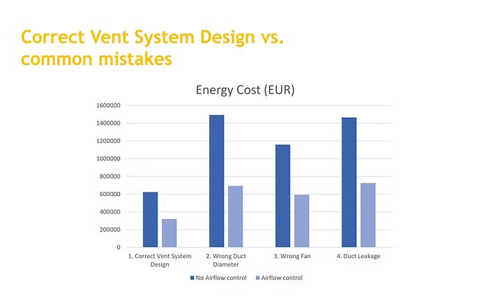 Le coût énergétique du fonctionnement d’un système de ventilation dépasse généralement les coûts d’investissement des ventilateurs et des conduits.