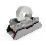 Des patins en caoutchouc sont ajoutés des deux côtés des profilés métalliques afin d’éviter tout pont sonore. Sur le profilé métallique supérieur, il y a deux axes cylindriques recouverts de caoutchouc pour maintenir la roue en place. La position de ces axes cylindriques peut être ajustée en fonction du diamètre de la roue choisie. Les ailes métalliques du profil offrent également une retenue latérale.