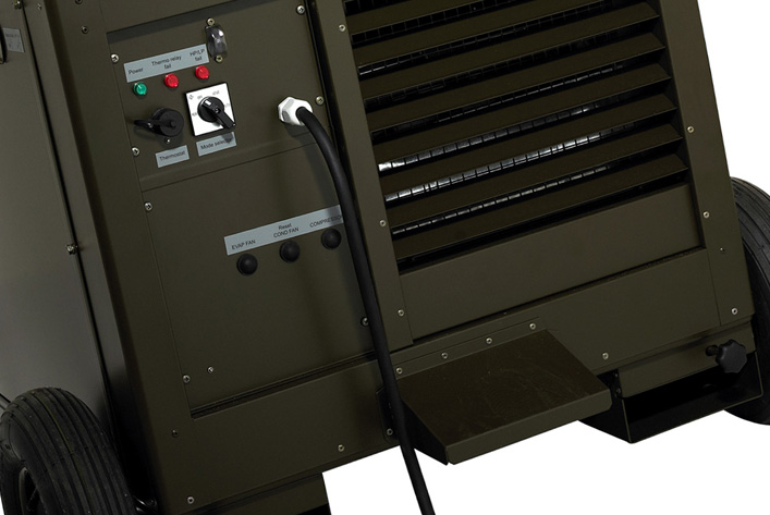 The AC-M7 MKII air-conditioner is a 7kW portable unit developed primarily to provide air-conditioning in temporary or transportable buildings or tents. The AC-M7 is designed to be placed outside the tent with ducted supply and return air.
