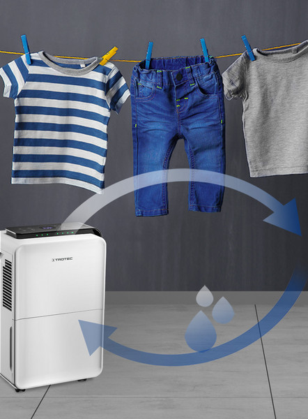 Laundry drying function: For gentle air drying of laundry, the laundry drying mode is recommended. The laundry drying function (also known as textile drying mode or SuperDry function) is comparable to traditional air drying outdoors. Dehumidifiers like the TTK 99 HEPA offer the advantage that laundry is dried as gently as in nature.