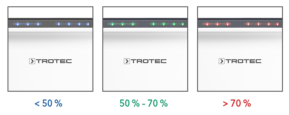 • Green: Indicates optimal air humidity between 50% and 70%