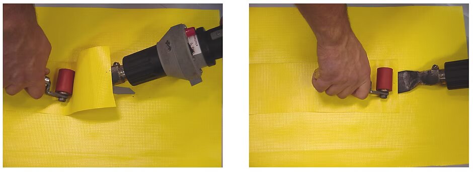 SWEDFAN Repair Kit Including Hot Air Gun with roller and 1 sqm of PVC material for repairing the damaged Ducting. Always have a clean and dry fabric to work on. Repairing with the Hot Air Gun is the professional way to repair ducting. The result is optimal durability of a repaired damage and no leakage. When using Hot Air Gun, always have something direct under the area you are repairing ! It’s very hot, be careful when using and protect yourself!