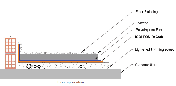 ISOLFON ReCork is produced from natural, synthetic and recycled elastomeric compounds and cork bonded with polyurethane glue. It is easy to install, resilient and durable with low structural weight. It can be 100% recycled. It is suitable for all conventional subfloor and floor covering