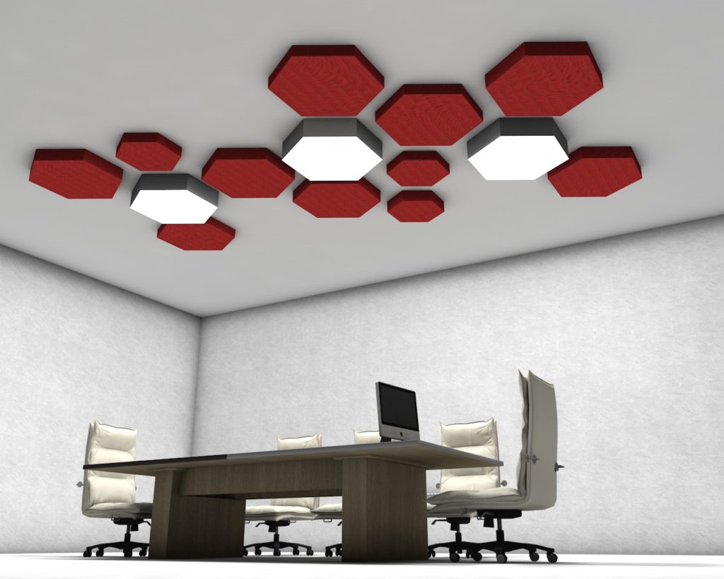 ALPHAcoustic – Sky.Fos is a new series of acoustic panels that combine acoustics with lighting. Named after the Greek word “ΦΩΣ” which means Light, these Acoustic/Luminous ceiling panels can either be suspended horizontally from the ceiling, or attached vertically to the wall. The hidden LEDs, with high intensity, spread light evenly on the front panel fabric surface.