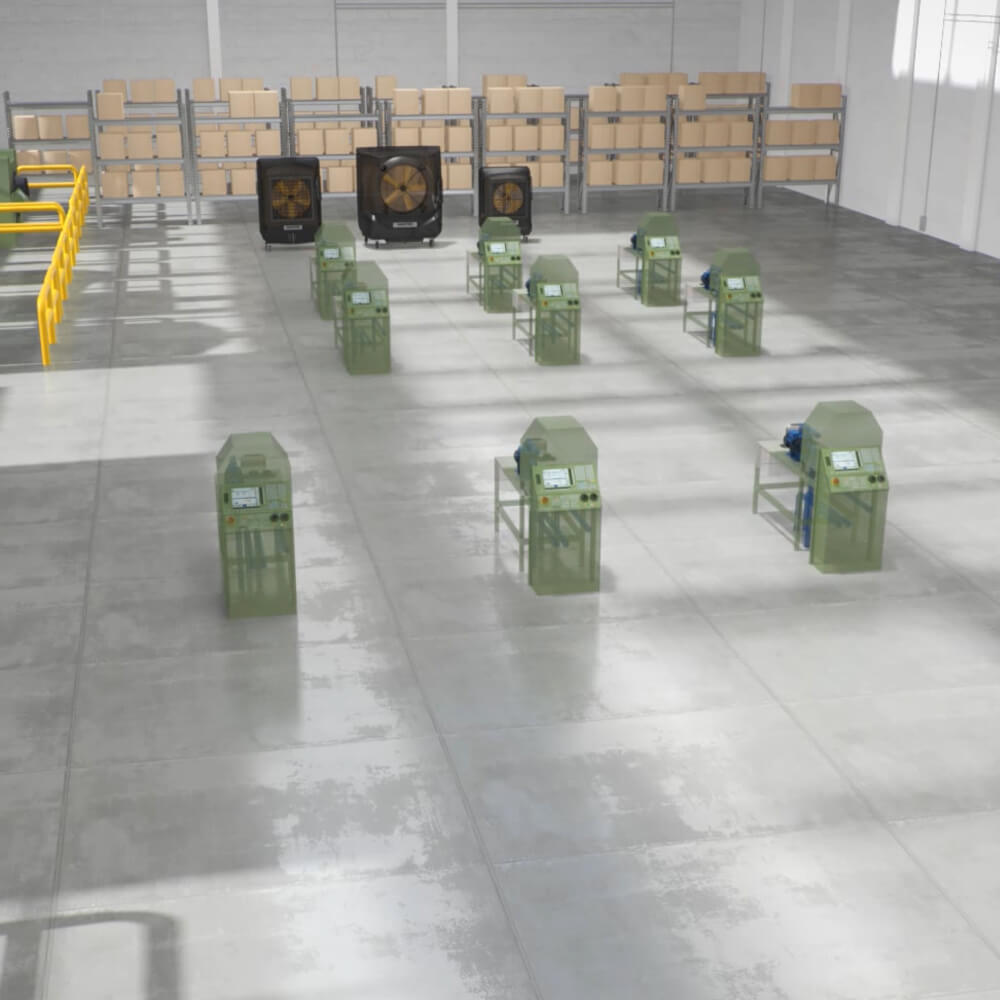 High efficiency cooling solutions for large industrial facilities. Master air coolers stand out for their low consumption and great efficiency, allowing air cooling of large spaces with a minimum operating cost.